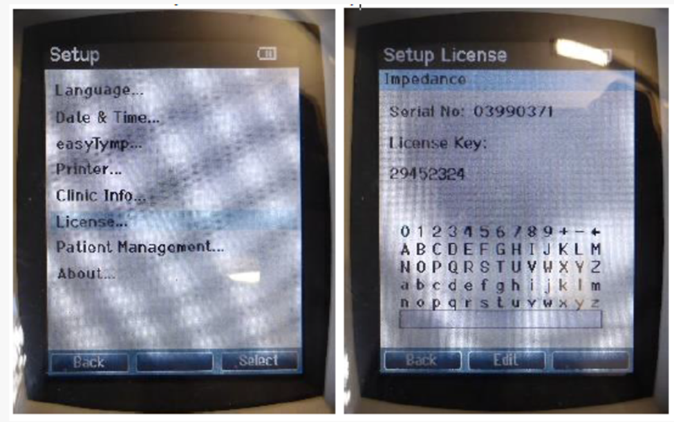 To use the EasyTymp, you need to send medrx@medrx-diagnostics.com the serial number so we can generate a license key. The serial number is found in the setup menu of the EasyTymp: